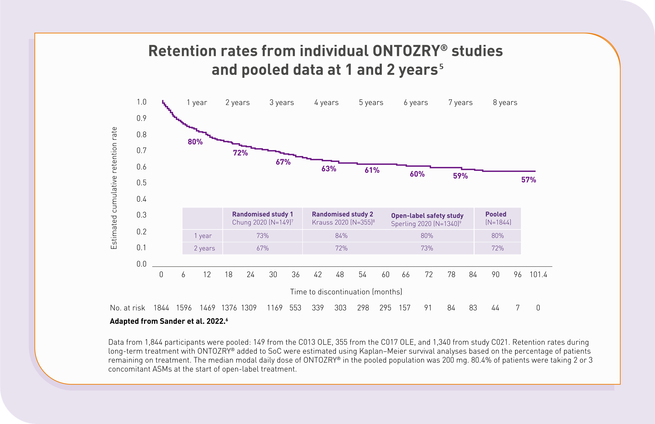 Retention rates on ONTOZRY® appear to be comparable to or better than rates reported for ASMs in pre-marketing open-label extension studies conducted as part of respective clinical development programmes.5